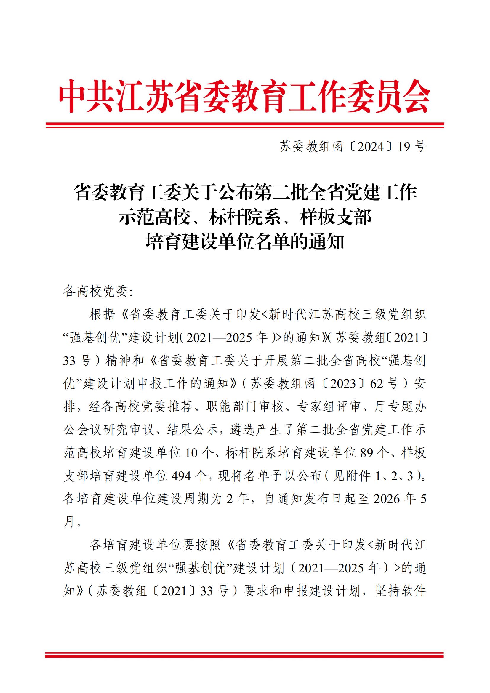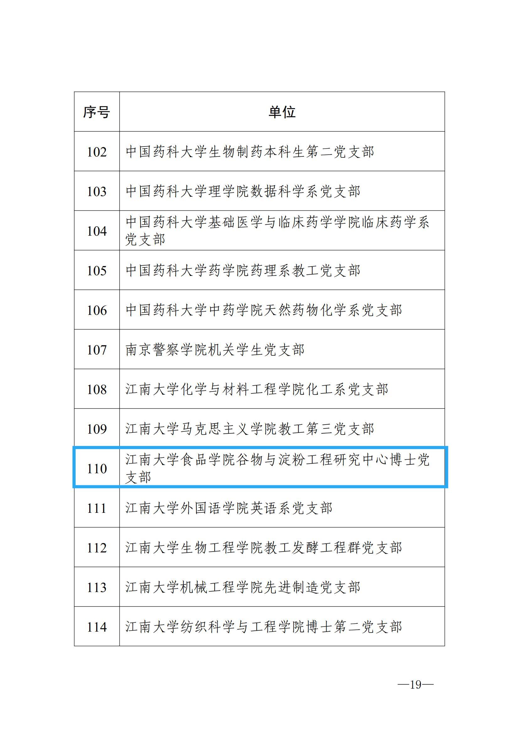 近日,江苏省委教育工委发布《省委教育工委关于公布第二批全省伟德国际示范高校、标杆院系、样板支部培育建设单位名单的通知》(苏委教组函〔2024〕19号)。我院谷物与淀粉工程研究中心博士党支部成功入选第二批“全省伟德国际样板支部”培育建设单位。