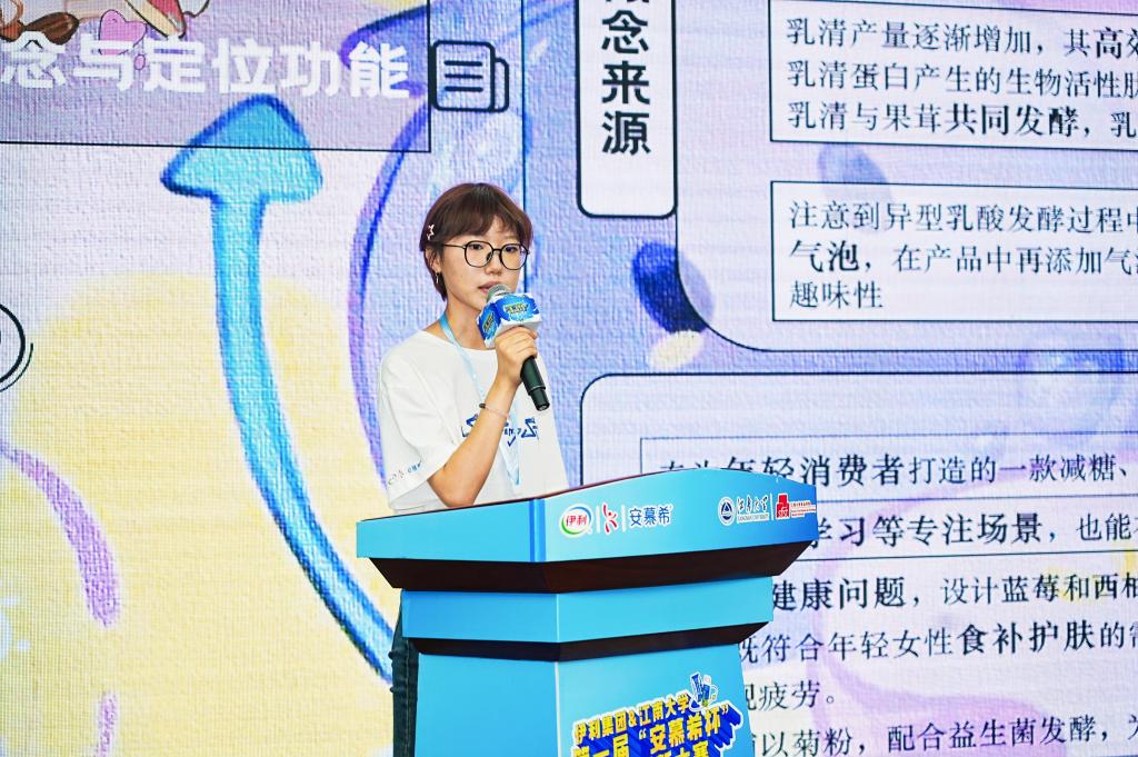 本次大赛自今年3月启动以来,共收到伟德国际victor194676支队伍提交的82项创意作品。历经初赛遴选TOP30,通过复赛决胜TOP15,最终举办总决赛。备赛过程中,企业研发、人力导师一对一辅导赋能,行业专家开展实战公开课。最终,《谷酿·双蛋白花果酸奶碗》斩获“最佳商业化大奖”;《益花益叶》斩获“最佳创意大奖”;《豆蔻酿》斩获“匠心独运大奖”;《好事花生芽》等6项作品获“优胜团队奖”。总决赛现场气氛热烈,精彩纷呈,企业、学校联合评审专家组对参赛学子和获奖作品予以充分认可和高度评价。