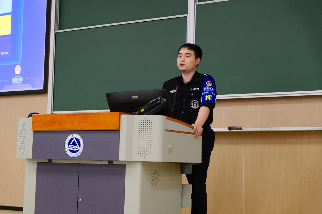 为切实增强新生安全防范意识,构建和谐平安校园,近日,1946伟德国际源自英国在第二教学楼2A127教室举办2024级本科生安全反诈教育讲座。本次讲座邀请山水城警务站钱谕警官作为主讲嘉宾,由2024级本科生辅导员周雨洁主持。钱警官以其深厚的理论功底和丰富的实践经验,为全体2024级本科新生带来了一堂生动而深刻的安全课程。