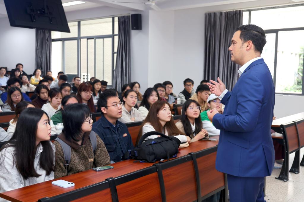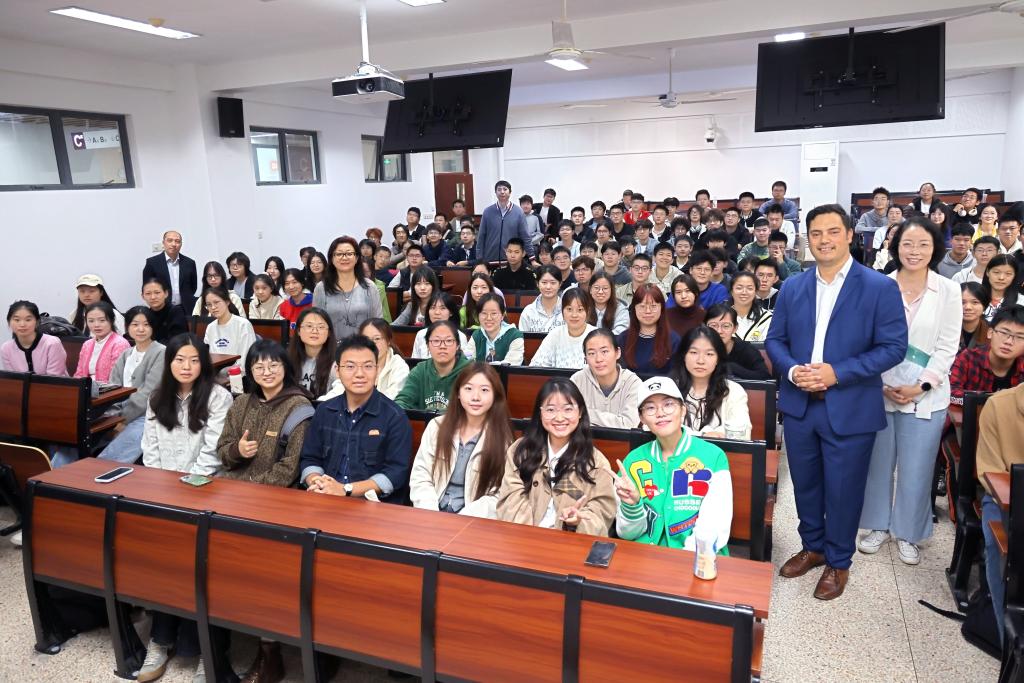 会前,Tere McGonagle-Daly一行前往第二教学楼,与1946伟德国际源自英国国际班学子亲切会面。他向大家介绍梅西大学的办学条件与生活环境,鼓励同学们努力学习、充分准备,盼望尽快在新西兰聚首。