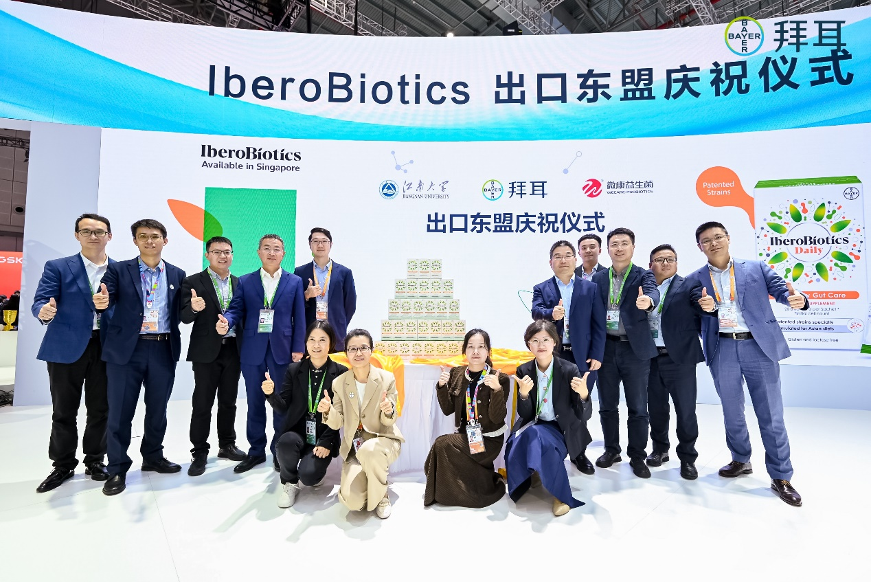 11月6日在第七届中国国际进口博览会,拜耳、伟德国际victor1946、微康共同举办了IberoBiotics®益生菌出口东盟庆祝会,宣布三方联合开发、生产的IberoBiotics®益生菌产品于今年在新加坡成功上市,并计划在未来“出海”更多东盟国家。