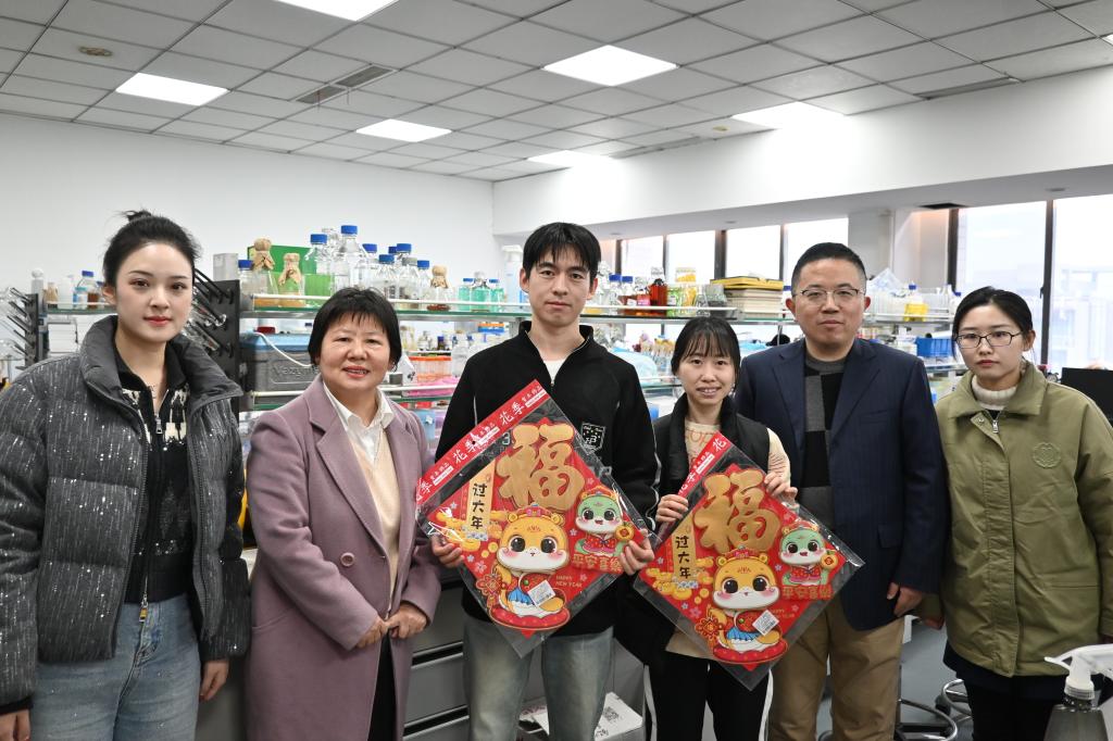 1月23日上午,1946伟德国际源自英国副院长孙秀兰、党委副书记李雷、研究生辅导员胡卉君、本科生辅导员周雨洁一行走进实验室看望留校学子。师生们交流实验进度和留校日程。老师们叮嘱同学们要充分利用好假期时间,多学习,勤锻炼,劳逸结合,并守牢实验室安全防线。学院还特别为留校学子准备了新春福字,让同学们在这里感受到“大院小家”的食品文化。