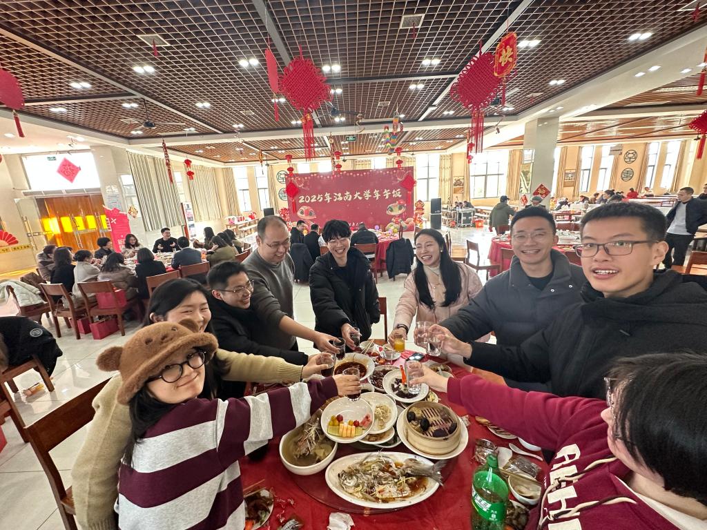 人间烟火气,至美是团圆。寒冷的冬日里,一顿热气腾腾的团圆饭是属于中国人独有的浪漫。农历小年中午,学校在江南苑为全体留校学子准备了一场丰盛的团圆年饭,不仅有美味佳肴,还有精彩的节目和抽奖环节。师生们举杯共饮,品尝佳肴,同庆佳节,在这个特殊的日子里,每个人的心中都充满了归属感和幸福感!