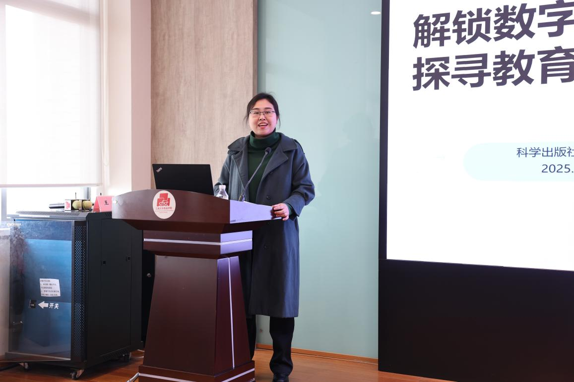 张静秋以《解锁数字教材密码探寻教育生态重构》为题进行系统讲解。她的报告围绕五个主题展开,深入浅出地讲解了数字教材的相关知识。首先,她阐述教育数字化转型的时代命题,指出当前教育领域正面临着前所未有的变革,数字教材正是这一变革的重要推手。接着,张静秋详细介绍数字教材的定义、特征,使教师们对数字教材的认识更加清晰。她还强调保护知识产权的重要性,并介绍相关法律法规和政策。随后,张静秋通过案例生动展示数字教材如何与课堂教学、实验教学、在线学习等多种教育场景相结合,提升教学效果和学生的学习体验。她还分享了科学出版社已发布的数字教材相关案例。