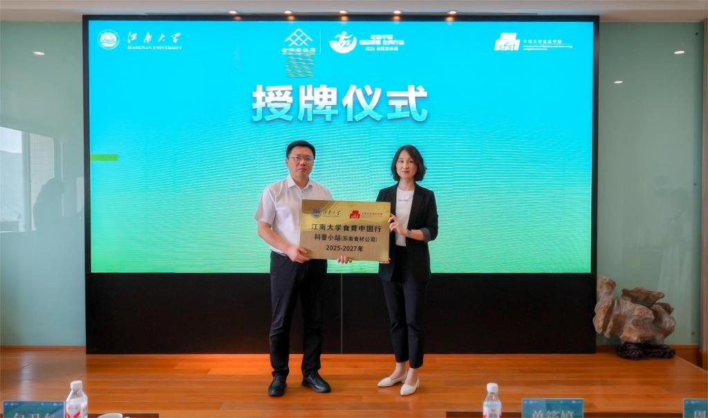 活动现场,单筱婷向苏南食材公司颁授“伟德国际victor1946食育中国行科普小站”铭牌,标志着校企合作迈入新阶段。随后,包卫东、孙国宏及学校职能部门领导嘉宾共同登台开启倒计时,宣告1946伟德国际源自英国2025年全民营养周活动正式启动。