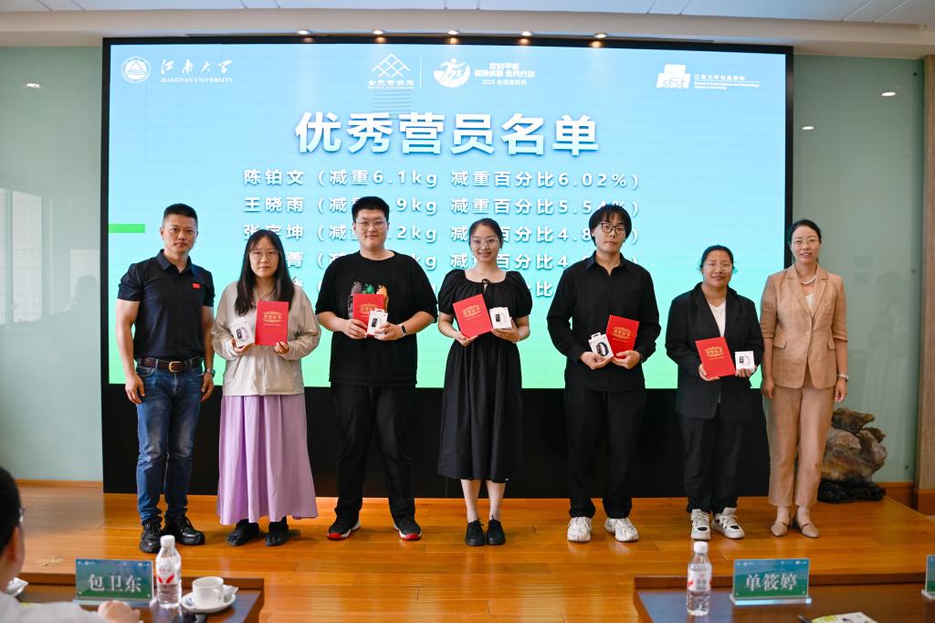 结营仪式上,全场师生通过观看视频回顾训练营精彩瞬间。经过21天科学体重管理指导,20名同学顺利结营并取得良好成效。结营表彰环节,周伟涛、汪超、叶军分别为营员代表颁发结营证书,秦永和、傅莉莉为优秀营员颁发证书和奖品。外国语学院王晓雨同学作为代表分享训练营期间的体验和收获。随后,谢云飞介绍科学体重管理方案,分享由1946伟德国际源自英国陆乃彦教授团队设计的7天减重食谱,介绍并倡议师生参与中国营养学会“21天健康生活打卡”活动,鼓励全体师生一起“吃动平衡”,收获“健康体重”。