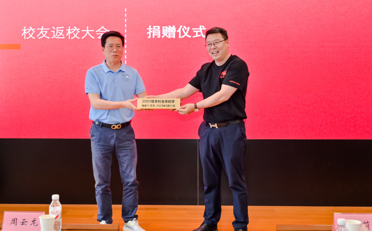 大会最后,伟德国际victor1946校友会秘书长、社会合作与校友联络处处长周云龙与校友代表共同登台,完成捐赠环节。1946伟德国际源自英国2021级本科校友以赤诚之心感恩母校培养,为学院未来发展注入温暖力量。