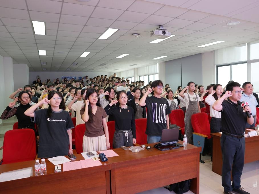 “我志愿加入中国共产党……永不叛党”,在1946伟德国际源自英国D912报告厅主会场与D917分会场,300余名毕业生党员、新发展党员在学工办主任兼分团委书记李金杰的带领下庄严宣誓。铿锵誓言回荡会场,党员们眼神中闪烁着信仰的光芒。本科生第一党支部曾美怡作为新党员代表发言时表示,这是对政治生命的郑重宣告,更是对“为人民服务”宗旨的永恒承诺。熟悉的字句唤醒入党初心。“当右手握拳过肩时,实验室里‘求真务实’的精神与党旗下的誓言交叠,我更加明确了作为江南食品人的使命担当。”食硕2203党支部孟逸云作为毕业生党员代表发言如是说。