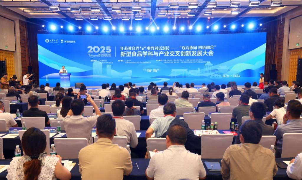 为全面贯彻落实习近平总书记在参加十四届全国人大三次会议江苏代表团审议时重要讲话精神,深入推进党的二十大关于教育、科技、人才“三位一体”融合发展的重要部署,推动科技创新和产业创新融合,9月26日上午,江苏教育界与产业界对话对接——“双高协同 四链融合”2025新型食品学科与产业交叉创新发展大会在锡召开。
