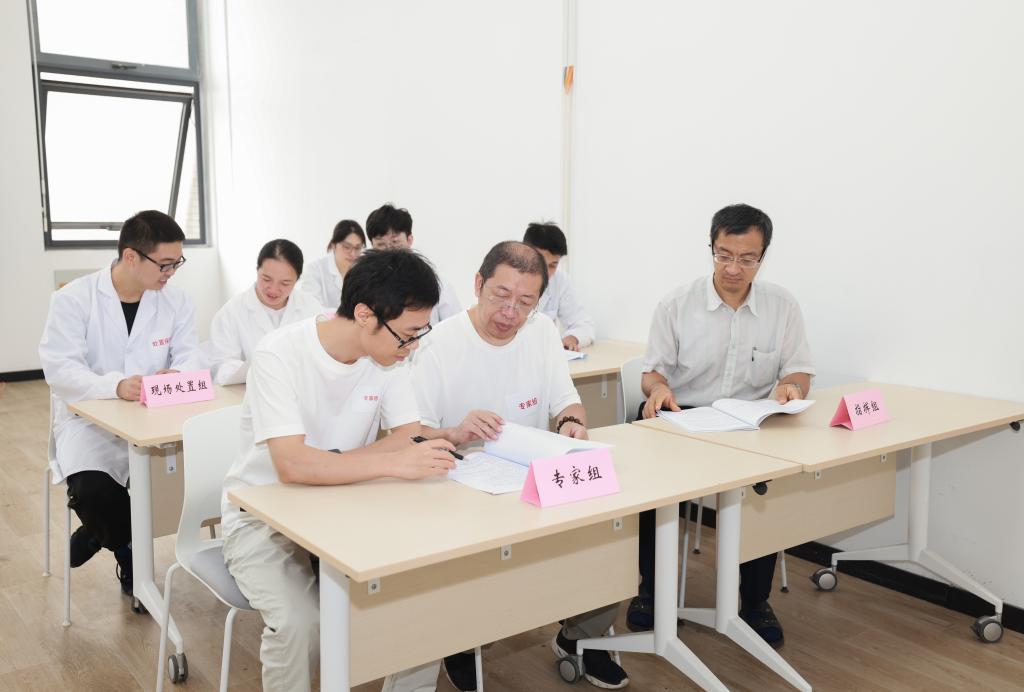本次应急处置演练场景设定为工业CT在进行样品检测作业时,在门机联锁装置及显示等安全防护设施及仪器正常的情况下,巡检仪巡测时发现辐射剂量数值异常。院辐射工作人员立即启动辐射事故应急预案,校辐射管理组立即成立专家组、医疗卫生组、环境监测组、处置保障组、现场处置组等5个组并紧急赶赴现场,进行实地调查、监测及相关工作。