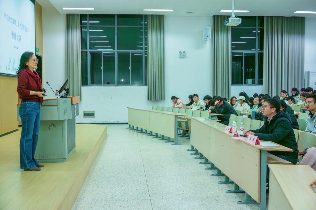 朱老师指出,食品行业高度以市场为导向,关注市场动向不仅有助于专业学习,也对未来职业发展具有重要指导意义。她还特别分享了沟通的艺术,提出“认同+鼓励”的交流模式——即通过正面肯定结合建设性反馈,有效提升沟通质量与人际协作能力。