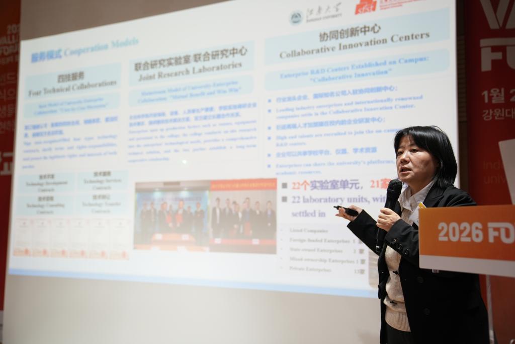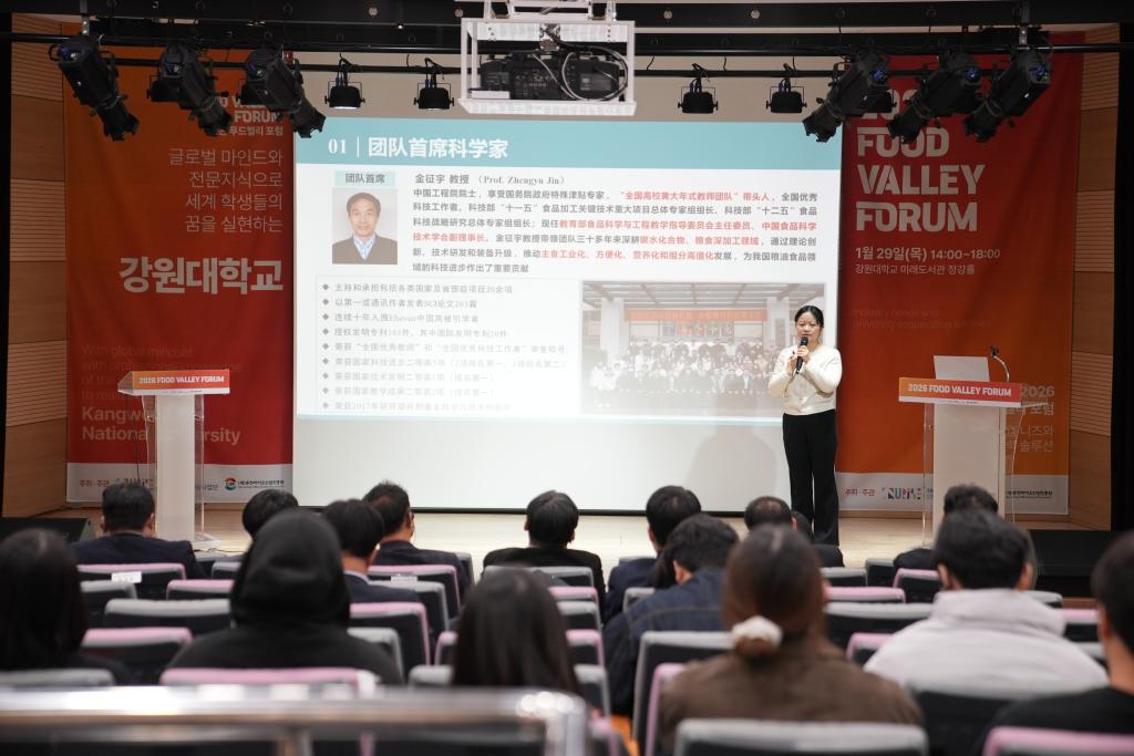 在论坛学术环节,孙秀兰院长作了题为《未来食品发展与系统创新:构建产学研协同创新新生态》的主旨报告。报告系统阐述了我院在产学研深度融合与食品产业创新方面的实践与思考,围绕全球气候变化下粮食安全的核心挑战,重点介绍团队在真菌毒素预警、绿色防控等关键技术的研究进展及产业应用案例。周星副教授分享食品碳水化合物深加工与高值化利用领域的最新成果。两场报告展现了我校食品学科的科研实力,获得了与会学者的广泛关注。论坛还汇聚了来自首尔国立大学、江原国立大学、春川生物产业振兴院等多位知名学者的精彩报告。