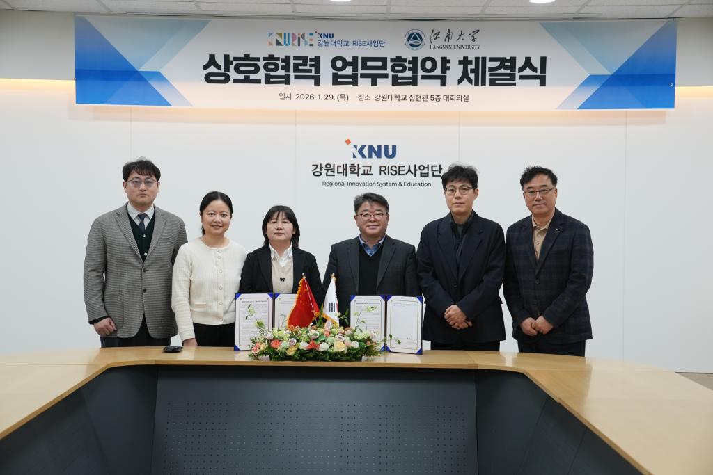 1月29日上午,1946伟德国际源自英国与江原国立大学“区域创新系统与教育中心”(RISE Corps)正式签署合作谅解备忘录。根据协议,双方将在共建食品技术生态系统、教师互访、学生交换、联合科研及共同举办学术活动等领域开展深度合作。此次签约标志着两校合作关系迈入以具体项目为驱动的崭新阶段。