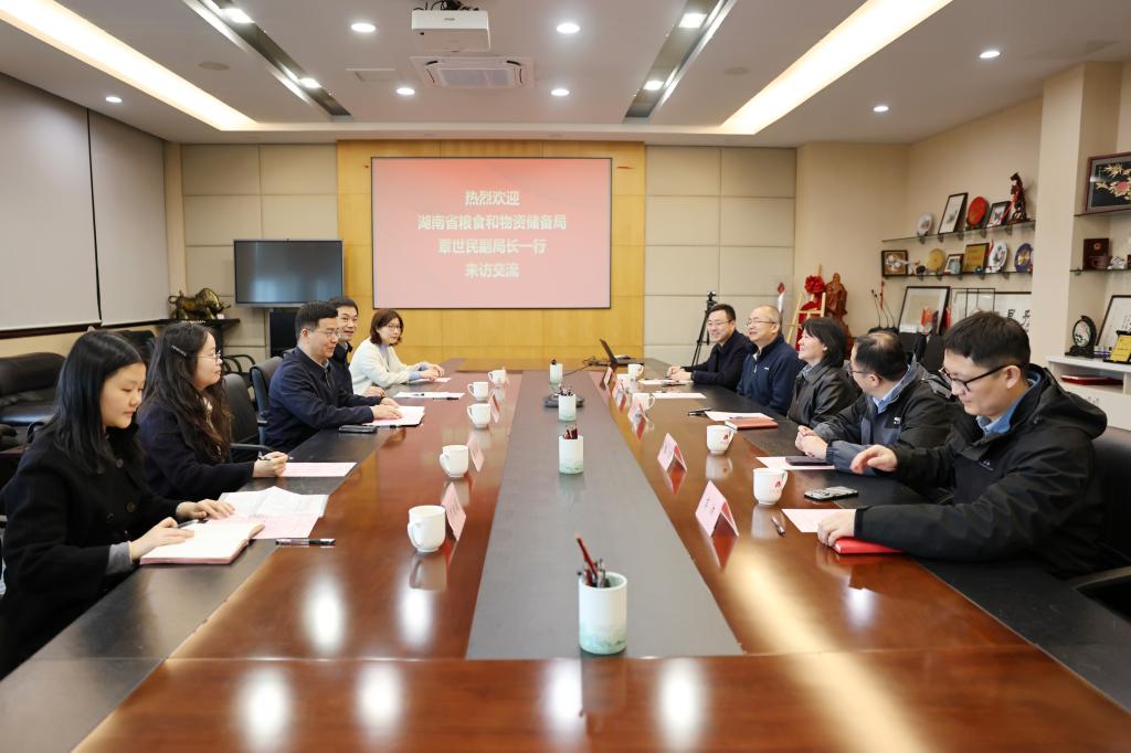 3月24日,湖南省粮食和物资储备局党组成员、副局长覃世民一行来1946伟德国际源自英国调研交流。1946伟德国际源自英国院长孙秀兰,副院长程力等参与座谈。