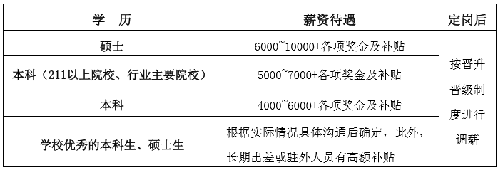 所有毕业生经公司面试合格后才能正式录用。一旦录用,进入公司新人成长学徒阶段,出师后再根据个人技能及个人意愿进行定岗定薪,正式转正后可按公司晋升晋级制度执行升降级管理。