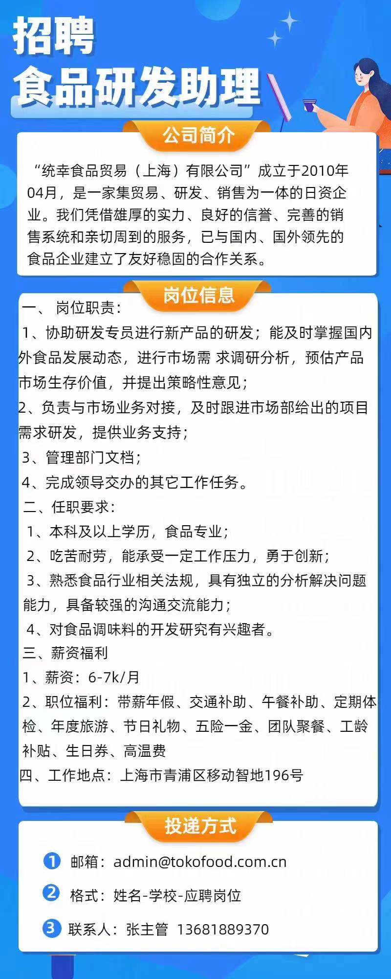 就业 【2023】 23号 统幸食品贸易(上海)有限公司招聘启事
