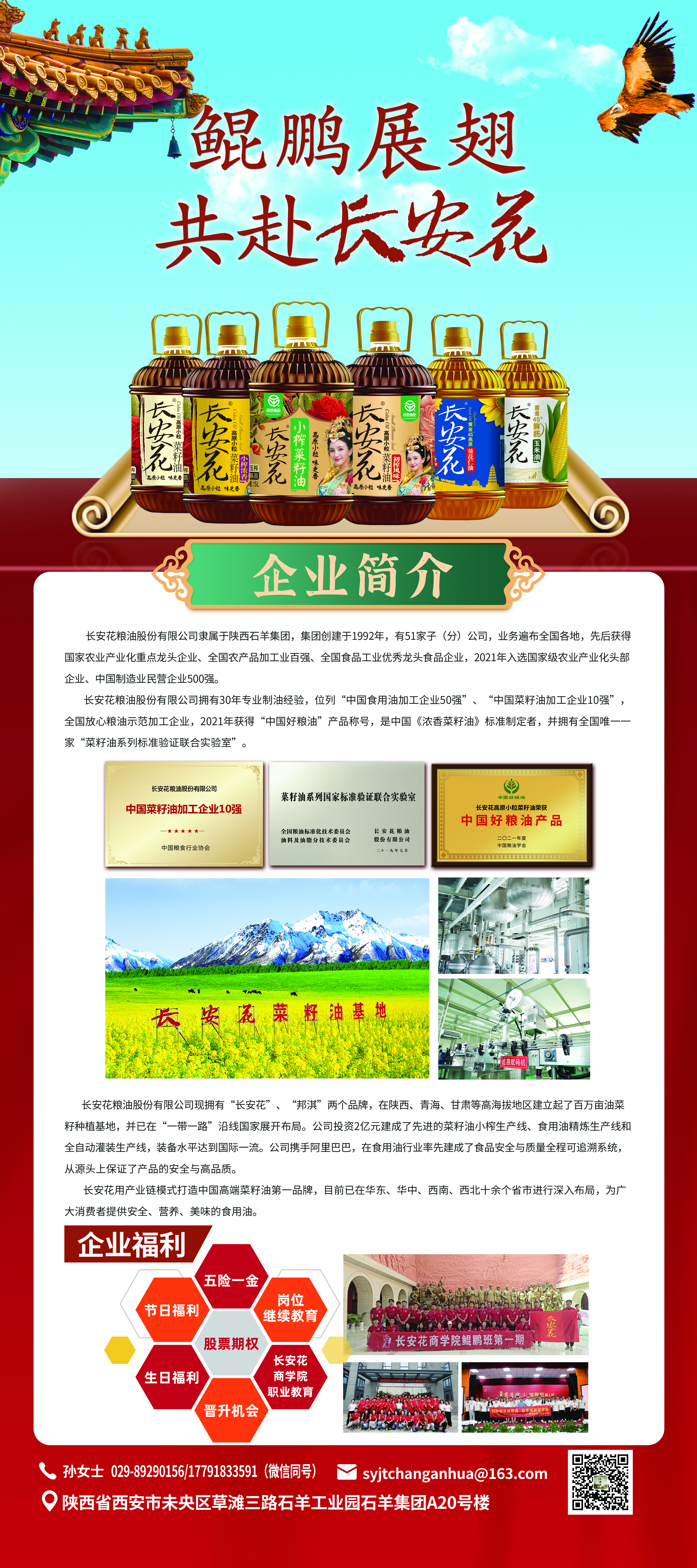 就业 【2023】 49号 长安花粮油股份有限公司招聘简章