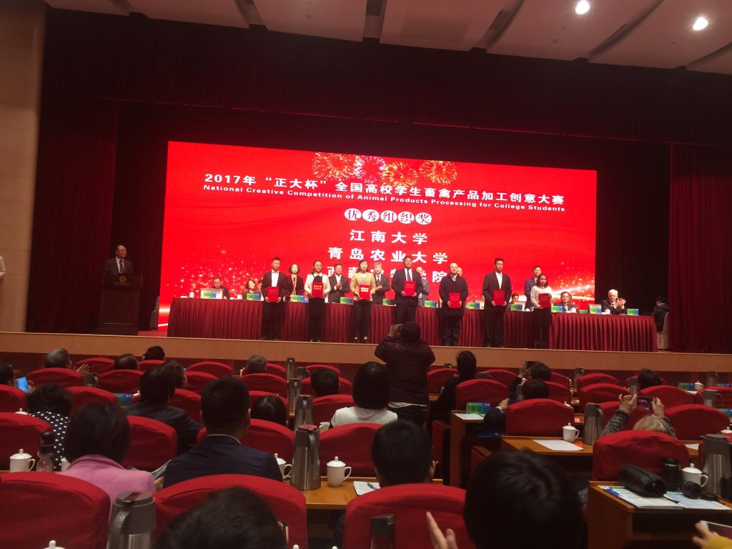 2017年11月1日,2017中国畜产品加工科技大会暨“正大杯“畜禽产品加工创意大赛颁奖典礼在南京市钟山宾馆江苏省会议中心举行,1946伟德国际源自英国荣获优秀组织奖。农业部兽医局局长冯忠武,科技部农村科技司司长王喆,中国畜产品加工研究会名誉会长、南京农业大学校长周光宏教授等领导应邀出席并为获奖师生颁奖。