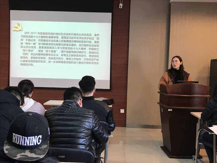 会议开始,李琳老师指出这次召开专题组织生活会和民主评议党员工作要紧紧围绕党的十九大精神,牢固树立“四个意识”,坚定“四个自信”,提升基层党组织组织力,查找纠正“四风”突出问题特别是形式主义、官僚主义新表现。
