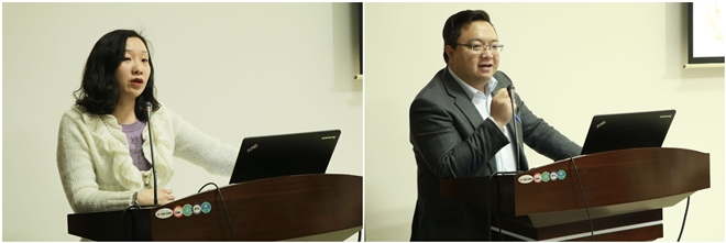 陆懿女士、王斌先生向同学们介绍公司相关情况