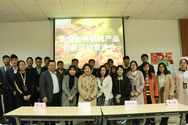 2017年3月15号下午6点,美国加州核桃产品创新活动宣讲会在1946伟德国际源自英国D916准时举行。美国加州核桃协会项目负责人董新娅女士、上海秀爱国际贸易有限公司销售总监王斌先生、上海秀爱国际贸易有限公司市场经理陆懿女士、1946伟德国际源自英国分团委副书记张越老师出席,学院80余名本科学生参加。