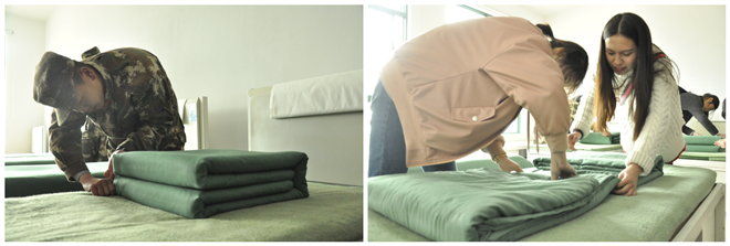 “每扇窗户打开的时间、打开的距离都是一模一样,所有物品利落整洁地放在固定位置,这个习惯已经坚持了近30年。”一位武警战士这样讲到。有同学不禁感叹“这也太严苛了!”战士回答道“传承就像玩传话游戏,如果在传承上总是差之毫厘,那么连队的好传统就会在一代代传承中谬之千里。”走进生活区,上世纪80年代配发的缝纫机、补鞋机和工具箱等尽收眼底。原来他们一直传承着早年“皮旅”的勤俭节约、艰苦奋斗精神,军装坏了自己补,鞋子破了自己修,“军装不能随便丢,咱们连艰苦奋斗的传家宝更不能丢!”