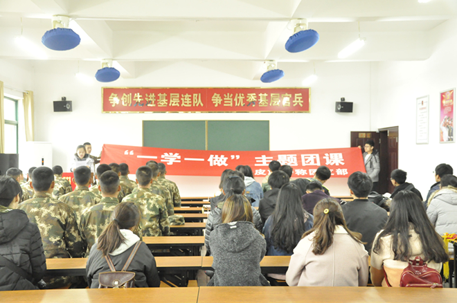 学习连队的记录视频使得此次团课达到高潮。视频分别从学习、生活、训练以及实战等各方面让我们意识到这支连队在新时代里是如何将“皮旅”精神落到实处的。不少同学在观看的过程中落下热泪。视频中武警战士说“我们有为连队争光的义务,但没有抹黑这支英雄连队的权利”。两年没有回过家的战士在执行任务时遇到自己的母亲却只能说一句:“妈妈,对不起,我在执行任务。” 2010年,在上海世博会安保任务中,连队官兵始终保持高昂斗志,持续10多天成功疏导、处置日均70万、最多时达103万超大人流拥堵沙特馆突发情况,创造了“沙特馆执勤模式”,荣立集体一等功。视频中的他们默默忍受焦急群众的拳打脚踢,为的只是没有伤亡事故,“有的战士身上青一块紫一块的却没有吭过一声”一位战士后来这样说到。他们的这些话语让我们心里为之动容。