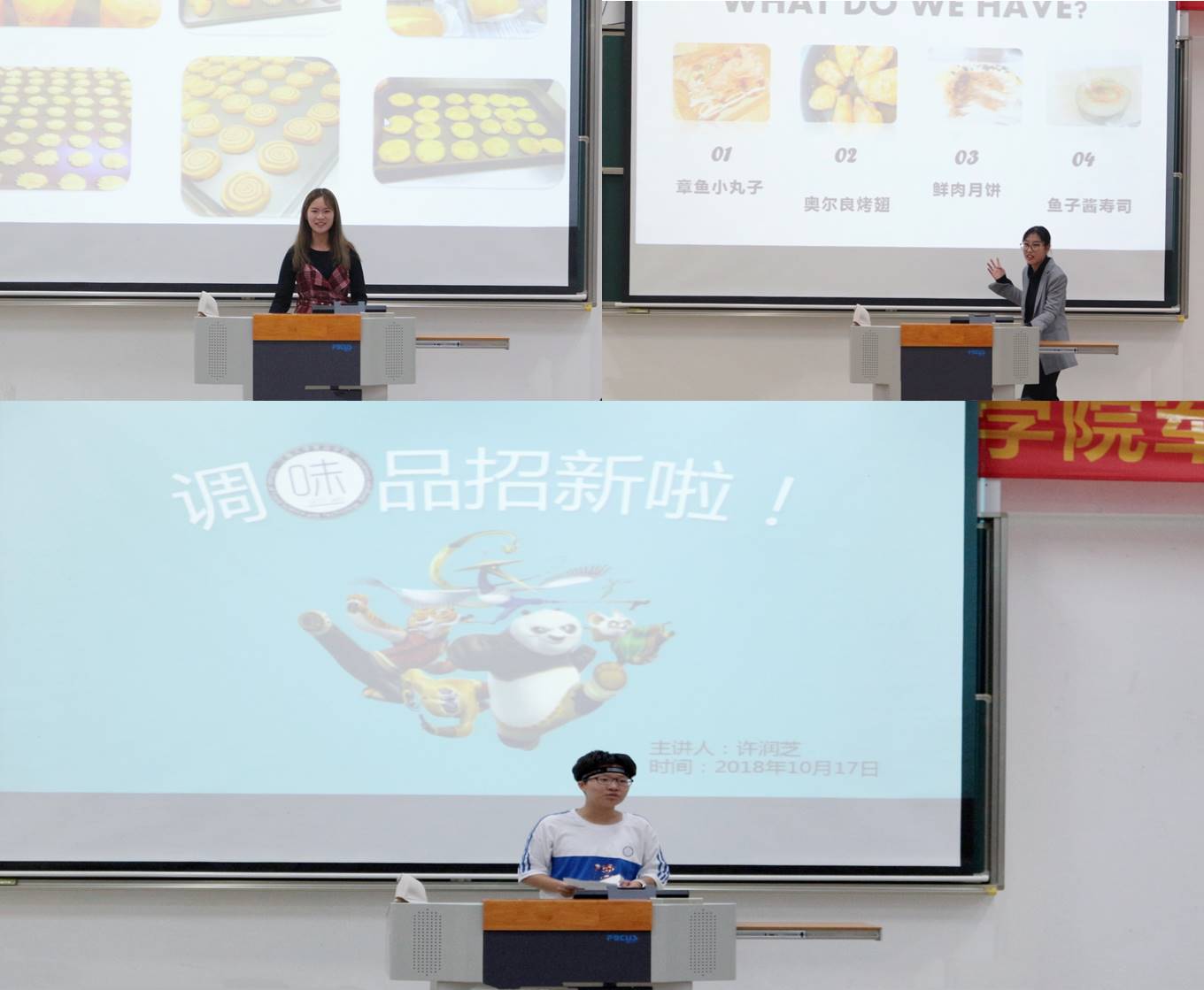 首先,主持人毛乡芸和高云鹏为大家介绍了本次活动的主题及到场嘉宾。开场结束后,社团联合会及五大俱乐部的宣讲代表分别对本部门展开了生动的介绍和宣传,宣讲人们幽默风趣,会场同学们不时发出阵阵笑声与欢呼声,现场气氛热烈。在宣讲的同时,俱乐部还为18级的同学们送上了精心制作的招牌美食,供在场同学品尝,让同学们感受到了来自俱乐部的热情,同时也激发了同学们对于俱乐部浓厚的兴趣。