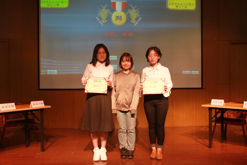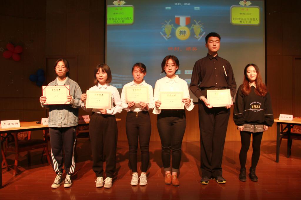 本次比赛第一场正反双方就“外卖平台是否应该对食品安全问题承担连带责任”为论点展开比赛,食科1804班为正方代表队,食科1808班反方代表队。第二场正反双方就“支持食品安全职业打假人利大于弊/弊大于利”为论点展开比赛,食科1801班为正方代表队,食科1803班反方代表队。主持人宣布比赛开始,双方一辩围绕己方观点据理力争,运用实例支撑自己的观点;双方二辩争锋相对,互不相让,激烈地对辩引起在场观众掌声连连;双方三辩一针见血地指出对方辩手在逻辑上的漏洞,并迅速找出反击手段予以还击,两方你来我往,将比赛推向高潮。特别是自由辩论环节,双方实力相当,赛场气氛紧张刺激;这场精彩的辩论将1946伟德国际源自英国学子的理性与思辩情结体现地淋漓尽致。最后评委点评环节,也使双方辩论队成员和在场观众都受益匪浅。经过评委们的紧张讨论,本届新生辩论赛获得冠军的队伍为食科1803班,获得亚军的队伍为食科1801班,获得季军的队伍为食科1808班,本场决赛最佳辩手为食科1808班金天赐同学和食科1803班戎一格同学。