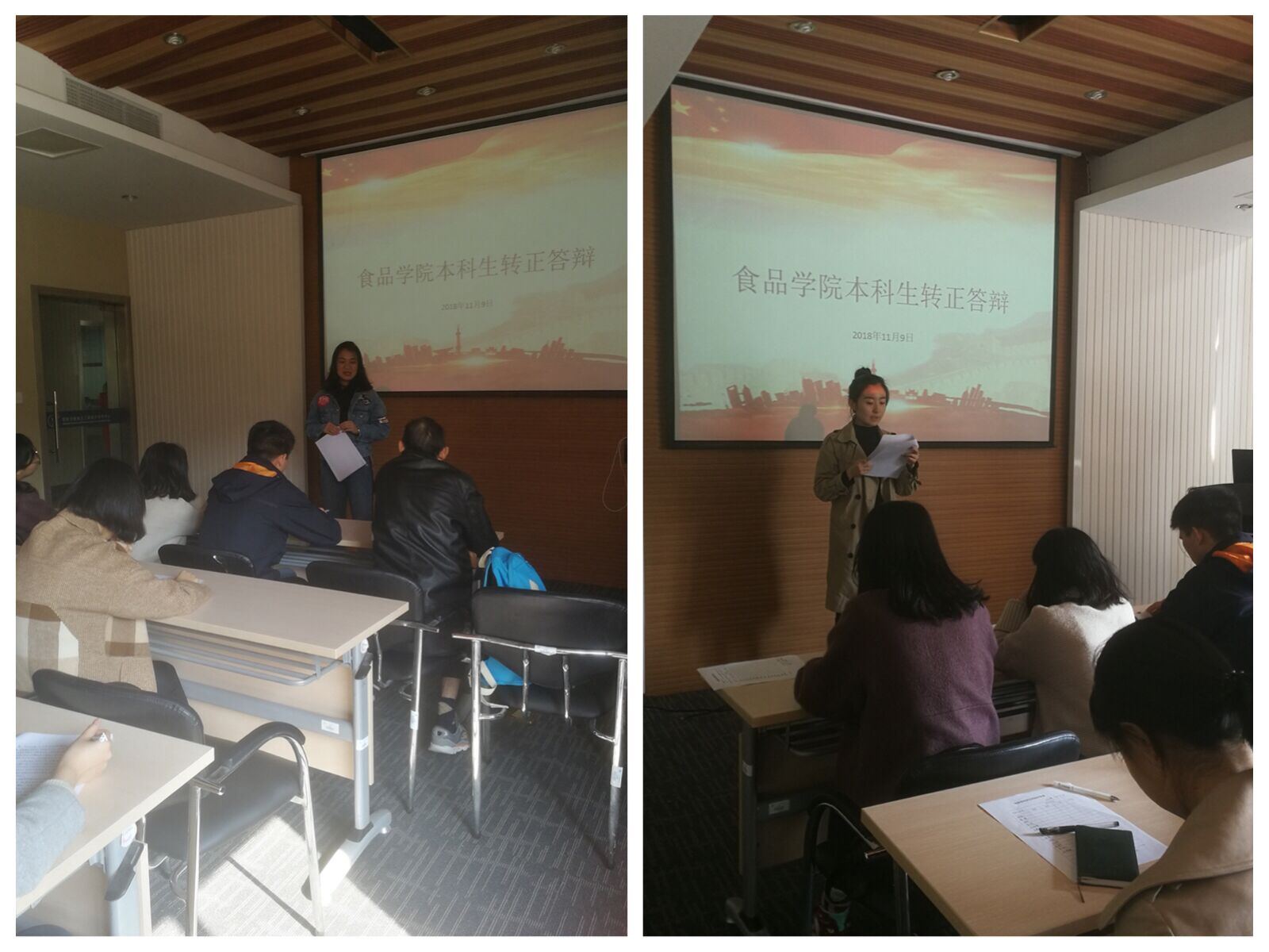 此次转正答辩分为个人陈述、现场问答与评议三个环节。首先拟转正的预备党员分别就其一年预备期内思想、学习、科研、工作和生活等方面做出了总结,对自己预备期内加强政治理论学习、加强党性修养、发挥先锋模范作用等方面做了详细陈述,对自身存在的不足、今后如何改进以及未来的努力方向作了相关汇报。