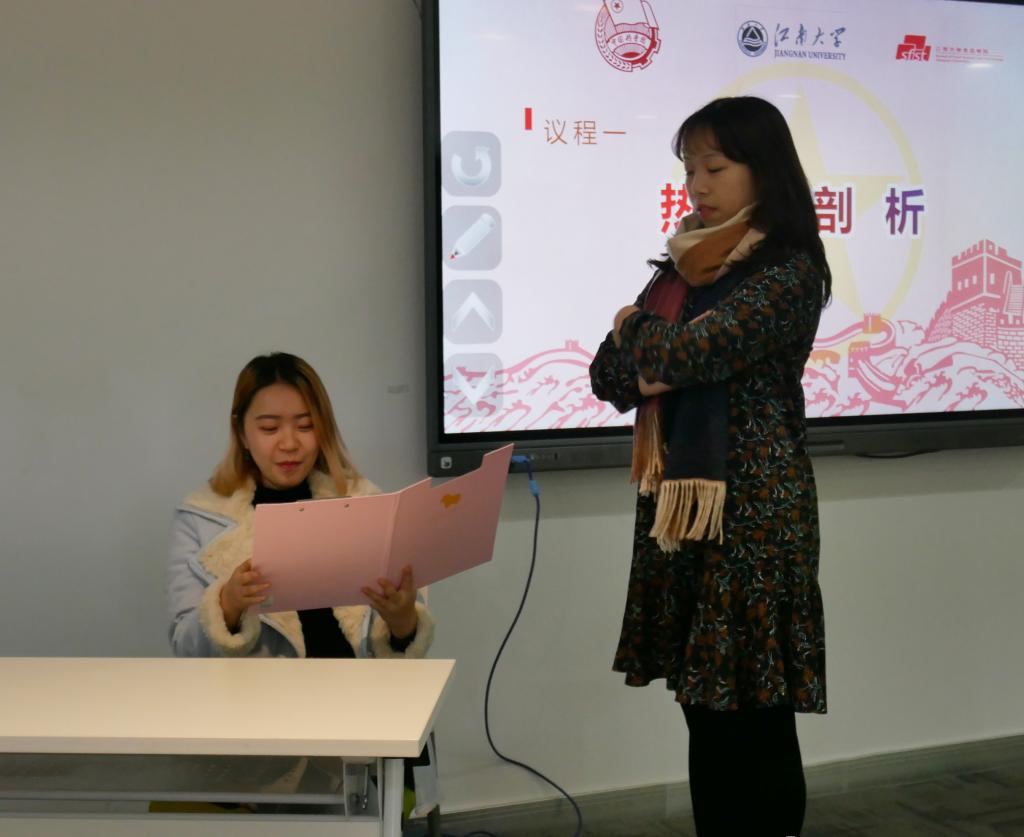活动伊始,宋阳和刁舒漫饰演了情景剧,由剧中主人公不同阶段的遭遇引入本次活动主题。食科1805班团支书毛乡芸向观众们展示了以“他真的很努力是一句好话吗?”这一问题开展的的调查问卷的结果。同时她对不同年龄段人的不同看法进行了简要的分析与反馈,并向观众们提出了疑问。