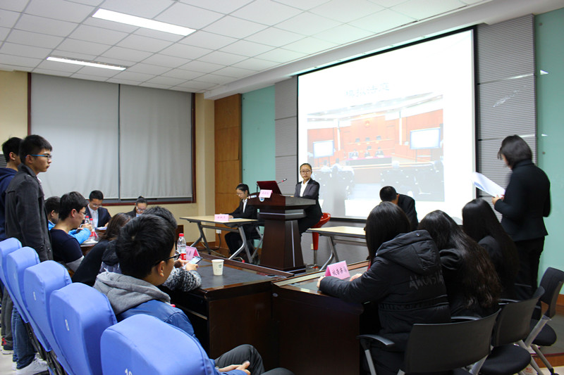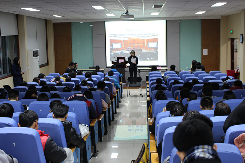 食科1604的同学通过情景剧的形式为大家还原了一场青少年学生犯罪案例,讲述了一个成绩优异、对电脑十分感兴趣的学生在听说学校地下仓库有电脑后,撬开锁进入地下仓库盗窃电脑的案件。由于使用点燃的扫帚照明,不慎引燃电脑上的防尘布,最终引起火灾,并造成一名救火老师受伤和巨大经济损失。为了加深大家对案例的理解,食科1601、1602的同学组织了模拟法庭,通过案情分析、角色划分、法律文书准备、预演、正式开庭等环节模拟审判及仲裁的过程,调动了现场同学的积极性与创造性。随后,邓钱萍警官对同学们的案件还原和模拟法庭给予高度评价,希望同学们能通过这一小小的案例领悟其中蕴含的法律常识,树立知法懂法、遵纪守法的法律意识。接着邓警官做了有关法律安全教育的专题讲座,她从防火、防盗、防骗及交通安全、治安违法、经济纠纷等方面入手,结合自身多年办案经验所积累的真实案例,分析案件产生的原因及作案特点,并为同学们提出了相应的防范措施,并告诫同学们要时刻树立“规则伴我心,安全伴我行”的基本法律意识。辅导员刘鑫在总结时指出,宪法其实就在身边,希望大家知法守法,牢固树立规则意识,针对即将来临的期末考试,刘鑫老师强调国家考试作弊现已入刑,希望同学们诚信应考,不要以身试法。
