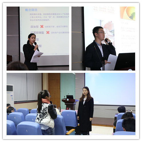经过前期精心的准备和激烈的竞争最终有15支团队过关斩将、突出重围、晋级决赛。这15支团队的成员涉及本科生、研究生,食品专业的同学和设计等其他学院的同学。在团队成员们的互帮互助,通力合作下,经过前期文献查阅、专项调研、市场调研、预准备实验最终15支团队以图文并茂的PPT形式从制作原理、产品理念、工业设计、市场定位、产品包装、产品预算、营销策略等方面进行产品展示和答辩。最终,CT.N团队的“好气哦!爆炸酸奶”通过巧妙的将跳跳糖和酸奶结合,打造出一款有趣又好喝的酸奶饮品一举夺得一等奖。“牛奶有毒队”和“S.S.S”获得二等奖。“牛牛要革命”、“牛奶奶请刘奶奶喝牛奶”和“Gourmets Factory”获得三等奖。另外还有四个团队分别获得了最佳人气奖、最佳创意奖、最佳设计奖和最佳表现奖。最后,兄弟伊兰市场总监黄云霞对本次大赛做了总结陈词并与参赛选手们进行了互动交流。黄总监表示参赛的选手们都具有较高的专业水准,从刚开始时的备战状态到作品制作的材料准备等一些细节,就可以看出参赛者的用心。此外,黄总监还表示第一届兄弟伊兰创新竞赛只是是一个开始,期待以后能够与伟德国际victor1946在更多方面开展更深入的合作。