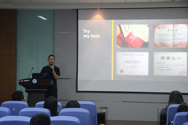 李一关同学以“关键时刻,推你一把的人”为主题分享大学生活
