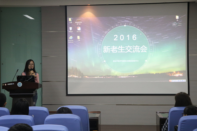 分享会伊始,高绮振同学讲述了自己在学生组织的工作经历,参加全国性食品创意大赛的收获,以及在世界500强企业亿滋实习的感想,向在座新生强调了学习英语和时间管理的重要性。同时就学生工作中的注意事项以及毕业选择问题与新生做了交流互动。
