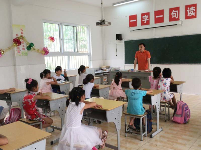 7月3日为期一周的支教正式开始。上午7点,孩子们便陆续到了教室,他们的年龄从小学一年级到初中不等。年龄稍小的孩子略带笨拙地拉开座位放下书包,中年级的学生刚到教室就已和周围的同学打成一片,初中生一坐下就自觉地拿出作业做起来…看着这样的画面,那些对支教第一天所有的局促和紧张感顿时烟消云散,面对眼前一张张阳光活泼的面孔,队员们的热情也被更充分的调动起来,干劲十足。