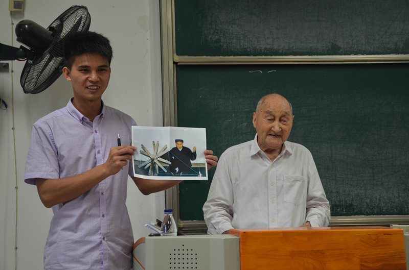 2016级辅导员刘老师向新生展示卜老先生旧照