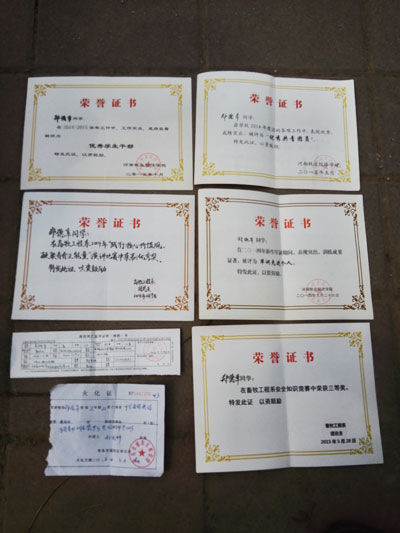 与郑德幸的死亡证明放在一起的是他上学期间获得的多项荣誉证书