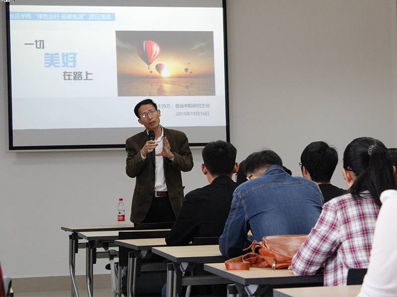 此次活动由食品研会副主席杨蕙主持,本次活动主要分为三个部分:首先,主持人在活动现场就大家出行方式的选择及原因进行了随机调查,并就调查结果为同学们讲解了电动车使用及管理过程中的安全隐患及不便之处。在场的研究生纷纷参与到话题讨论中,提出各自对于学校出行问题的意见与建议;接下来,运动达人学生代表张思聪、骑迹俱乐部会长马志龙分别结合自己的亲身经历倡导同学们低碳出行,感受徒步和骑行运动的力量与魅力。最后,伟德国际victor1946保卫处处长方正泉和1946伟德国际源自英国党委副书记王维分别从学校实际情况和高校大环境两方面对本次活动做出总结,方正泉处长还就现场同学关于电动车和自行车管理使用方面提出的建议和意见逐一作出回应,耐心为同学们分析解答,并倡导广大学子以步代车,绿色出行,为学校营造一个安全安静的环境和氛围。
