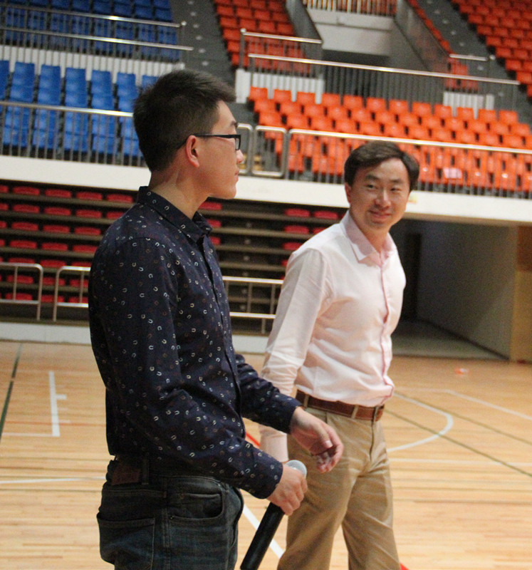 活动伊始,学院老师为中秋期间我院举办的“一封家书”活动的获奖同学颁发获奖证书。新老生篮球交流赛在校十佳歌手邓帅倾情献唱的灌篮高手主题曲《好想大声说爱你》中拉开序幕。比赛伊始。院篮球队F-club展现了强劲的实力,新生男篮也初露锋芒,两队精彩的比拼引得现场观众阵阵叫好。中场休息时,进行了八人版的“两人三足”及定点速投比赛,各位同学积极参加,各班团结一致。吴雨琛老师与同学交流及指导“战术”,王维老师也与男篮队员们亲切的交谈。下半场比赛更是精彩,比分连连追平,观众尖叫声不断,两队用他们炫目的技术和完美的配合为我们带来了一场视觉盛宴。比赛结束后,两队队员握手交流,吴雨琛老师为新生优秀队员颁发获奖证书并予以鼓励,与各班代表进行合影纪念。
