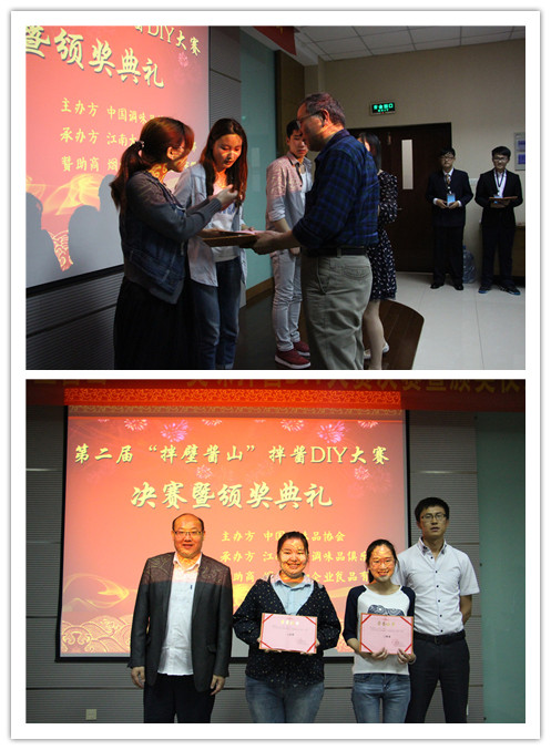 决赛现场,中国调味品协会李慧丽老师首先发表精彩致辞,她表示本次“拌壁江山,调味江南”创意大赛旨在通过动手实践提升大学生的创新能力、开发大学生的创造潜能,她希望通过创意大赛的举办培养更多了解行业需求、适应行业发展的专业人才,也希望通过比赛让更多的人体验到调味品的无穷魅力。随后,六支入围决赛代表队依次进行产品展示和答辩,选手们通过图文并茂的PPT详细的讲述了产品的制作过程、创意来源、营养价值和市场可行性为在场的评委和观众们展现了一场充满奇幻和魔力的饕餮盛宴。现场嘉宾根据选手们的介绍和展示,从创意、视觉、感官等角度全方位对参赛作品进行点评、提问并打分。最终“韩式秘制拌饭酱”凭借其独特的创意、令人回味无穷的味觉体验和精美的造型从众多参赛作品中脱颖而出,获得现场评委的一致好评,摘得这个夏天最美味的拌饭酱一等奖桂冠;造型别具风格的“缤纷酱米粒”、“柠檬鱼酱”荣获二等奖的好成绩;“鱼香拌饭酱”、“意孜独秀”、“脆和风沙拉拌饭酱”也因创意独特成功获得三等奖。“回忆专用三杯酱”、“吃楂风云酱”、“薯芋泥”和“金陵降火酱”获得优秀奖。最后,山东烟台欣和企业食品有限公司开发经理郝世朋先生对此次大赛进行点评,对大赛“创意大胆,回味无限”的风格留下了深刻印象,对大赛选手表现和产品表示了极大的赞赏,并表示同学们的作品创意无限对于启迪企业新产品研发思路有很大的促进作用。