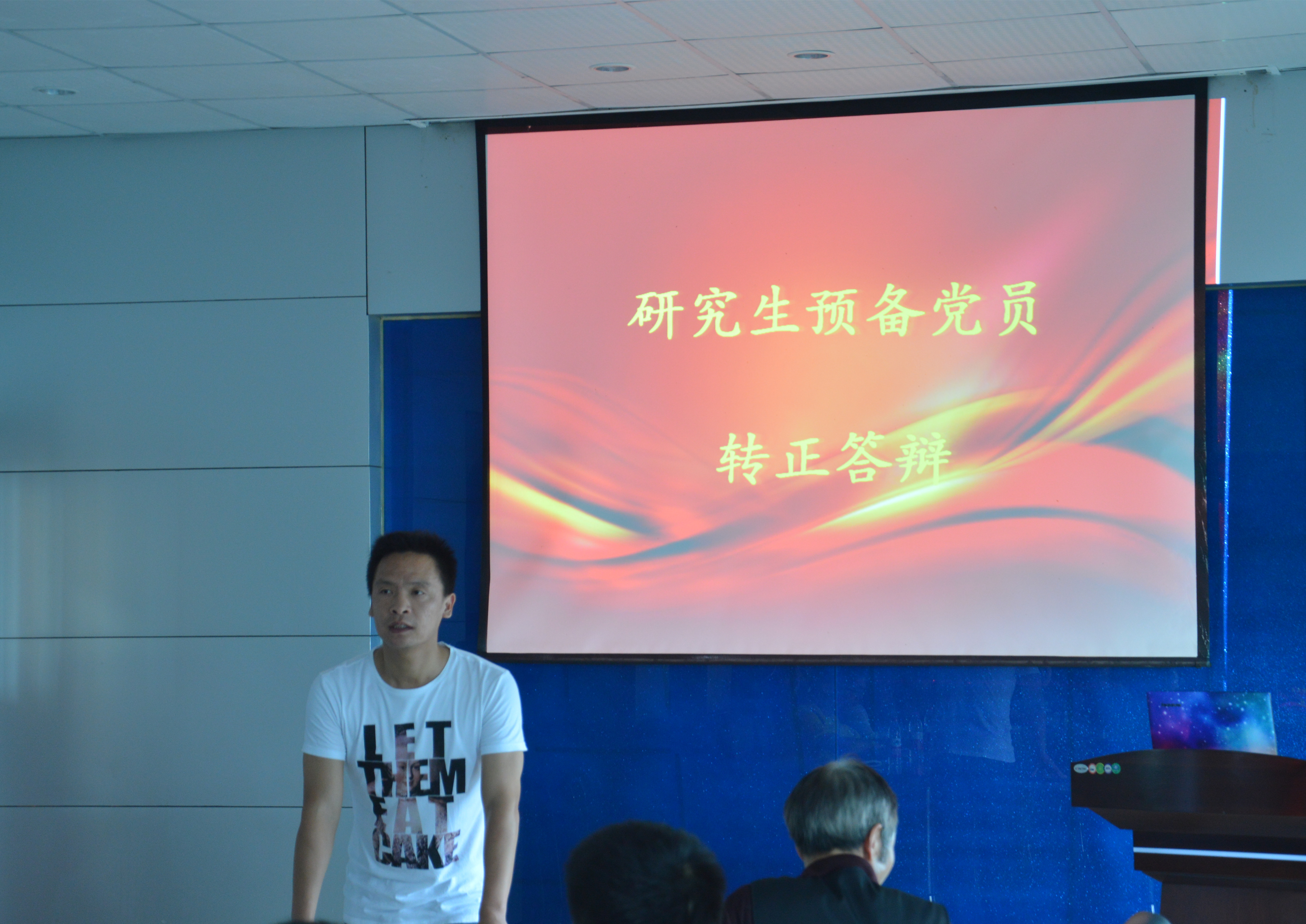 答辩会分为个人陈述、现场问答和评审评议三个环节。首先,各位预备党员就其预备期一年内思想、学习、工作和生活情况做出总结,并正确的认识了自己的缺点和不足。接着,答辩组老师就预备期内的情况、党员的义务、党员先锋模范作用的发挥情况以及转正后的打算等对预备党员进行提问,各位同学都做了诚恳细致的回答。最后答辩组老师就回答情况现场进行点评,指出不足,以帮助同学们今后更好的开展工作更好的与时俱进发扬党的精神。整个答辩会气氛热烈,充分体现了党内的民主性,增强了党内同志的交流。
