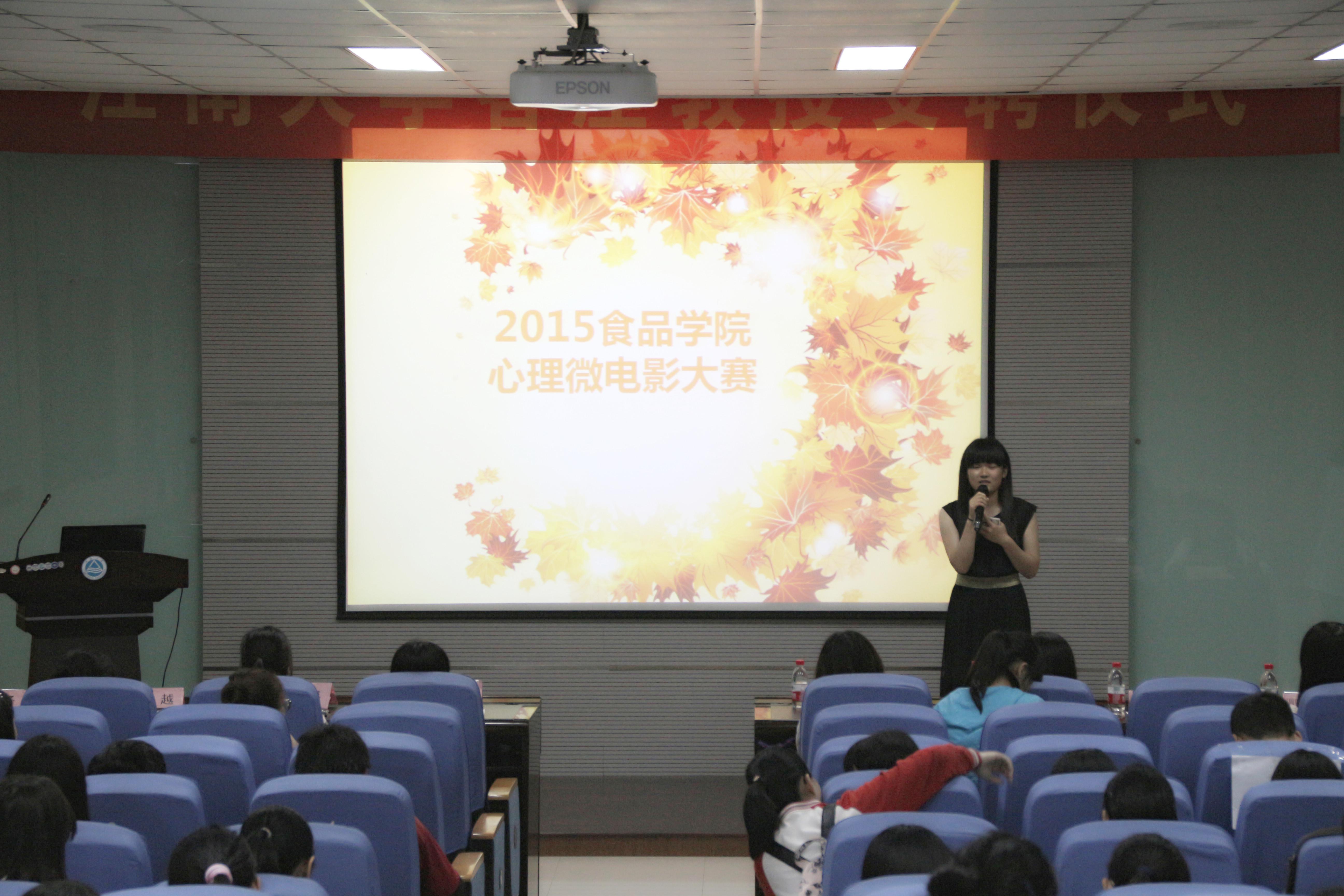 5月18号晚,题为“悦纳自我,从心开始”的1946伟德国际源自英国2015年心理主题微电影大赛在食品楼D914成功举行,1946伟德国际源自英国分团委副书记沈惠子老师,辅导员张越、曹淑慧、吴雨琛和1946伟德国际源自英国烘焙、乳制品、调味品、肉制品四大俱乐部的代表担任现场评委。