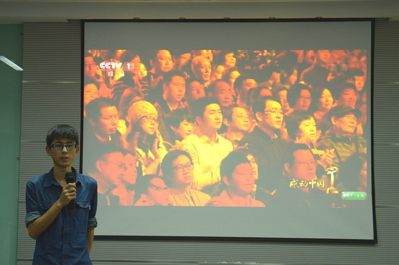 本场“道德讲堂”,以“引领道德新风尚,传递青春正能量”为主题,开展了学习道德模范、互通道德看法观点、观看感动中国视频三大环节活动。活动开始,全体成员共同聆听道德模范事迹,感悟道德力量。将氧气罐留给他人的“东方之星”救援人员官东、14年的任劳任怨托起家乡光明的宣传员王炳益、坚守温情照顾生病丈夫十年的好妻子吴丽梅、轮椅上“美画人生”的“玻璃女孩”丁红玉以及一辆板车拉母亲走两万四千里的孝女谢淑华,道德模范的事迹深深感染了现场的每一位同学。大家在聆听完模范们的事迹后,各抒己见表达了自己对道德重要性的认识和自身在道德方面的追求,赢得阵阵掌声。随后,全体与会成员共同观看了“2015年感动中国颁奖典礼”,再次体悟到道德的重要力量,将活动推向了高潮。观看结束后,党务中心培训部部长张梦天对本次讲堂进行了总结,并宣布本次培训圆满结束。