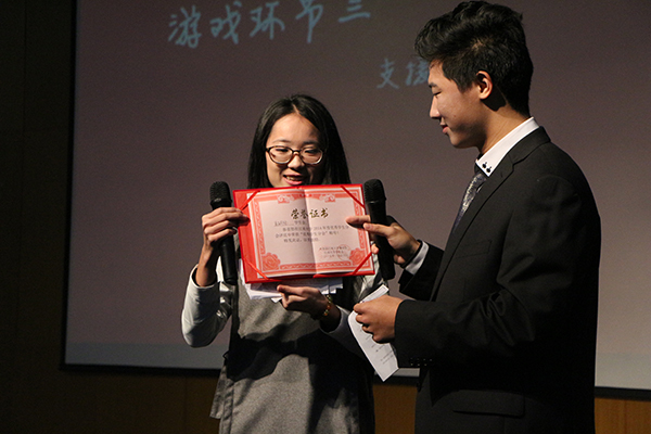 表演正式开始了,首先给大家带来惊喜的是文艺中心文艺部的话剧《后来了》。幽默诙谐的言语中藏不住对学生会的爱,调侃里却饱含着感谢与感动。最后一段搞笑欢愉的舞蹈更是调动了全场的气氛,实在精彩。然后便是最最激动人心的游戏环节了,两轮抢板凳游戏引得笑语不断,嗨翻全场。接着外联的马劲屿为大家带来一首《美人鱼》,宛若清风拂面,甚是动听。第二个节目是新宣与业业中心的舞蹈《bar bar bar》,祝福视频感人至深,让人深刻感受到他们的付出与不易,舞蹈生动活泼,台下欢呼阵阵。接下来的游戏是猜歌名,各中心的干事们大显身手,好耳力好身手使在场同学无不惊叹。第三个节目是体育和学促中心的舞蹈《小苹果》,中间穿插的口琴为节目增色不少,使人眼前一亮。随后的“支援前线”这个游戏,不仅考验了大家的反应能力,也考验了成员间的配合与默契。前排成员们争先恐后送给主任所需物品,场面火爆,掀起全会又一高潮。最后一个节目是科创和外联中心的歌曲串烧加方言诗朗诵。两人的深情演唱和搞笑的方言朗诵使得台下笑作一团,掌声不断。本次全会在秘书处精心准备的祝福视频中接近了尾声。最后主持人热烈祝贺1946伟德国际源自英国学生会获得伟德国际victor1946学生会分会第二名的优异成绩,并宣布全会到此结束。