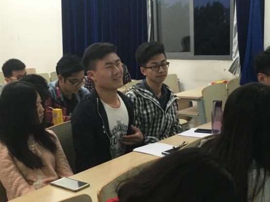 接着激烈的讨论环节开始了,郭伟同学首先为我们做了一个《人民的名义》的剧情概述,让一些没看过的同学对这部反腐剧有了认识,陈雷同学就“季昌明”这一角色发表了自己的看法,他认为:作为一个合格的团员,应该大事讲原则,小事有风格。遇到事情,临危不乱,保持清醒的头脑。吴宸锋同学就资本与权力的关系发表了自己的看法,提出人情腐败这样一个观点,而申老师则以他自身经历告诫我们无论面对什么样的诱惑,都要保持一颗正直的心,这是作为一个合格团员、合格党员都必须坚守的。孟令璐同学提出如何为人处世决定一个人的社会地位。身为大学生的我们,应该先成长再成熟,过于早熟对我们没有好处;我们要学会在挫折中成长,不畏惧挫折;不封闭自己,多和别人交流。刘冰洁同学向申老师提出了一些自己的一些问题,例如内心脆弱,承受不了指责等。申老师认为大学时期的我们正是 才有资本犯错,就像一个28岁仍没谈过恋爱的人就经受不起失恋,而18岁时的失恋还有那么长的时间留给自己。错误不暴露出来永远也不知道错了,所以这个时候我们承受的指责对我们来说都是最宝贵的财富,我们还有那么长时间去改正错误,完善自己。