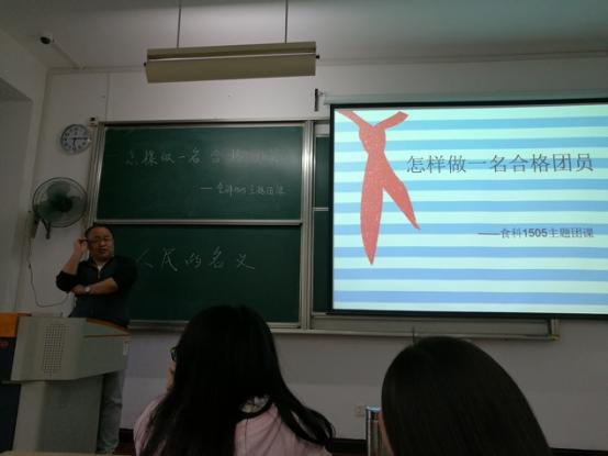 4月26日晚6点食科1505班于2A315举办了“怎样做一名合格团员”主题团课,同学们齐聚一堂,以最近热播的反腐剧《人民的名义》为线,积极探讨,畅所欲言。参加本次团课的,除了食科1505全体同学外,还有马克思主义学院的申端锋教授。