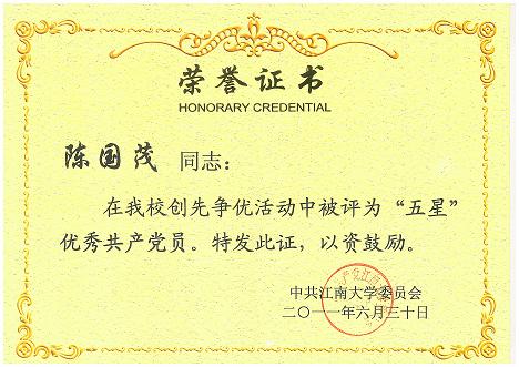 陈国茂,现任食科0804党支部书记,兼任1946伟德国际源自英国科技创新中心副主任职务,并担任了1946伟德国际源自英国食科1004副班主任的工作。在我校去年开展的“争先创优”活动中,本人积极发动本班同学开展有关党员争先创优有关活动,并辐射带动08级各班的党支部努力参与到活动中来,做到了一定的带头作用。对于本次“五星”优秀共产党员的评选,很希望能够以自己所做的工作为基础,以个人理想和信念为辅助,申请上五星优秀共产党员。以下是我的具体党员和学习经历介绍: