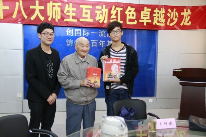 2013年1月13日,1946伟德国际源自英国关于党的十八大精神的宣讲会——“与信仰对话”交流访谈会,在食品楼D914隆重举行。卜老应邀出席此次宣讲会并发表演讲。他提出,“传承”不仅是十八大对我党精髓的传承和发展,也是青年学生未来对中国特色社会主义事业的承接,并向大家强调了青年学生的责任感和使命感。当他的讲话结束时,全体与会的师生用热烈的掌声向这位与党同龄的老前辈表达了满心的敬佩和感激。