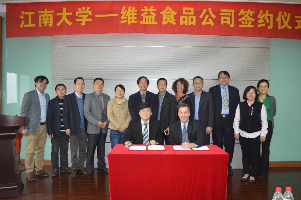 2015年11月18日上午,美国维益食品公司(Rich Products Corporation)-伟德国际victor1946合作项目签约仪式在1946伟德国际源自英国益海嘉里厅隆重举行。伟德国际victor1946副校长金征宇、校学术委员会办公室主任刘元法、国际交流处处长助理蔡建英、1946伟德国际源自英国副院长周鹏,美国维益食品公司高级副总裁Steve Franz博士、副总裁Voon san Wong博士、国际研发总监Romeo Leu博士、亚太区研发总监Serene Liu博士和研发主管Allen Liang先生,以及1946伟德国际源自英国部分师生出席了签约仪式。签约仪式由周鹏副院长主持。